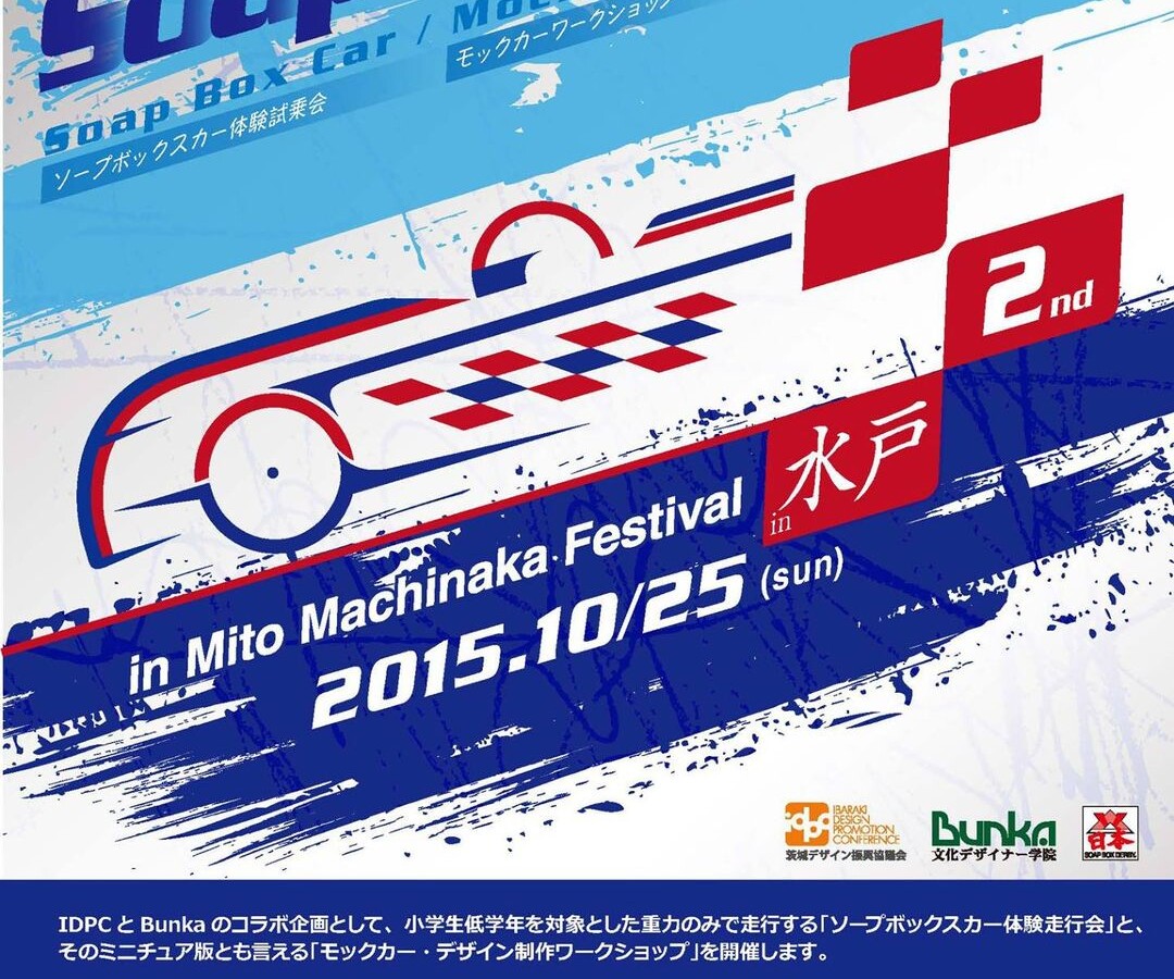 25Oct2015 イベント 水戸ソープボックスダービー 開催 10月25日、茨城デザイン振興協議会は「水戸まちなかフェスティバル」に参加しました。 「水戸まちなかフェスティバル」は、水戸市の心市街地を通る国道50号線を歩行者天国にして楽しむイベントで、今年で4回目を迎えます。 当会は昨年に引き続き、文化学院とのコラボレーションによる「ソープボックスダービー」を開催しま...