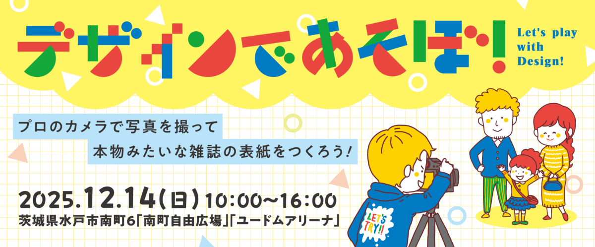 今回の体験企画 「でざいんであそぼ」 では、子どもたちが身近な人を撮影し、その写真を用いてまるで本物のような雑誌の表紙づくりに挑戦します。プロの撮影機材やデザイナーが使用するソフトウェアを実際に触れながら、デザインの楽しさや創造する喜びを体験できる内容となっています。