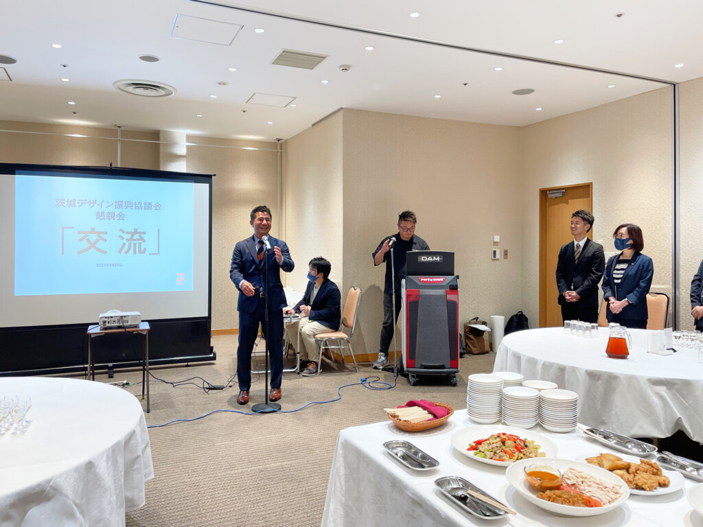が説明され、さらに会員がまずは交流を図り、それぞれの個性を理解し、多様な考えのもと力を合わせ大きなものとしていく。多様性こそ茨城デザイン振興協議会の魅力であり、デザインの力、デザイン発想によって、地域や世代間交流の懸け橋となっていく。ことが宣言されました。