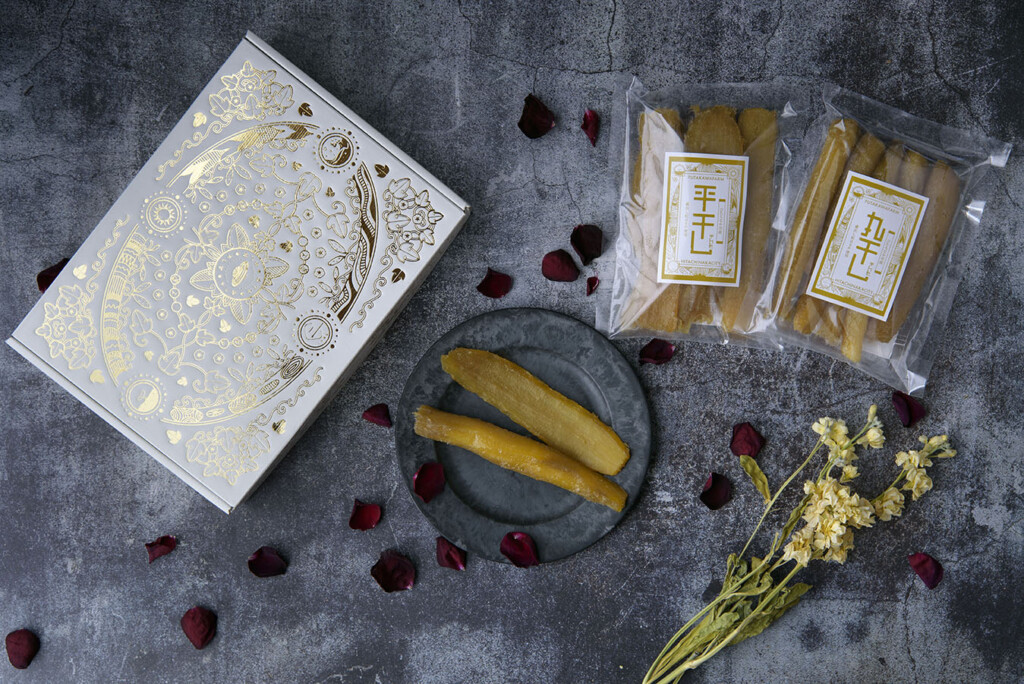 とろあまねっとり、紅はるかの干し芋。若手農家ながら「日本さつまいもサミット Farmers of the year 2020-2021」を受賞された二川農園様。その干し芋ギフト箱のパッケージをデザインしました。