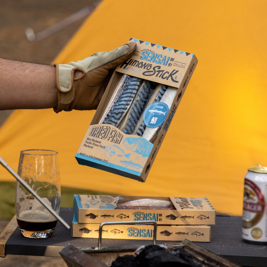 「美味しい干物を、手軽に食べていただきたい」その想いを伝えるためにプロデュースした、身についた骨を取り除いて食べやすいスティック状に加工した干物「鮮彩SENSAI」の商品パッケージをデザインしました。