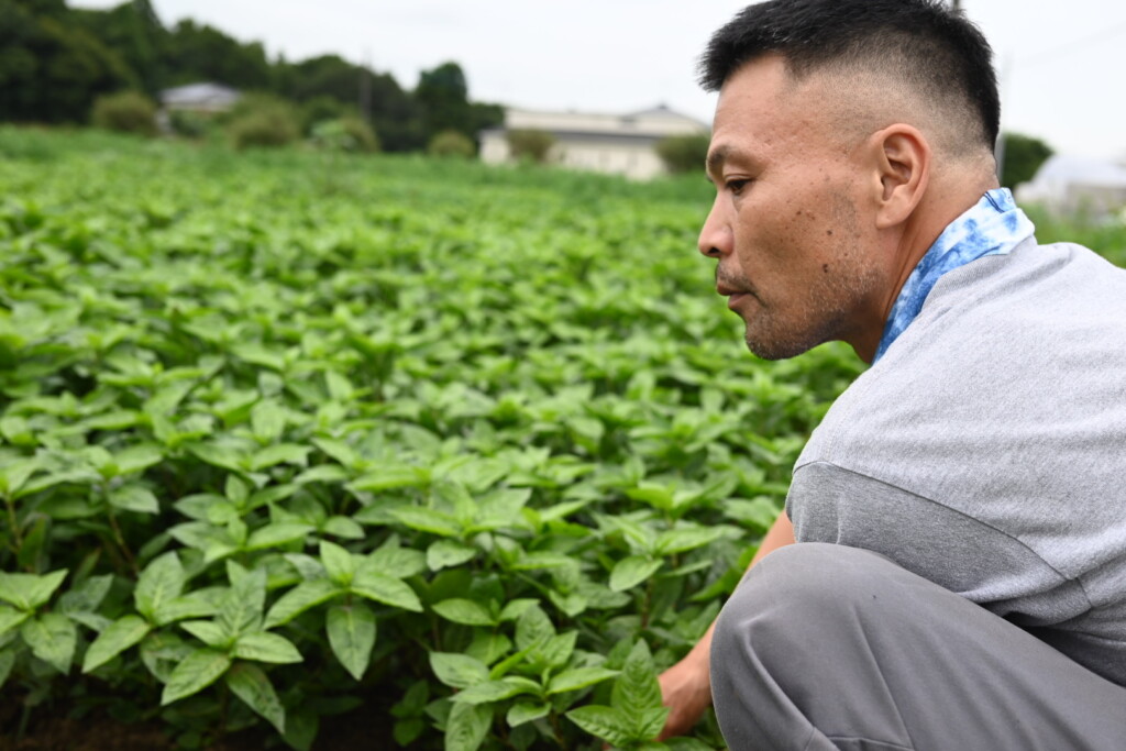 筑波山麓エリアで天然の筑波藍を栽培、加工されている鈴木さん。筑波藍とは、藍染に使われる原料です。栽培の他、乾燥、発酵し、染色の素材として使えるように蒅(すくも)として販売まで行っているそうです。