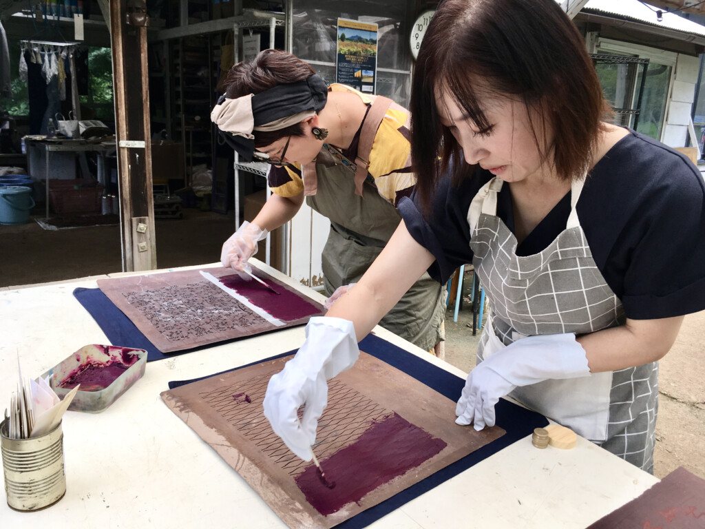 古い型紙を使用した型染め体験
