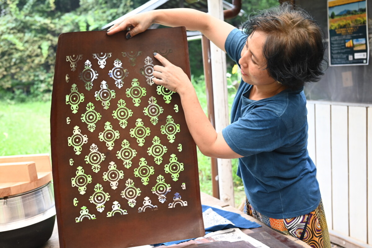 古い型紙を使用した型染め体験