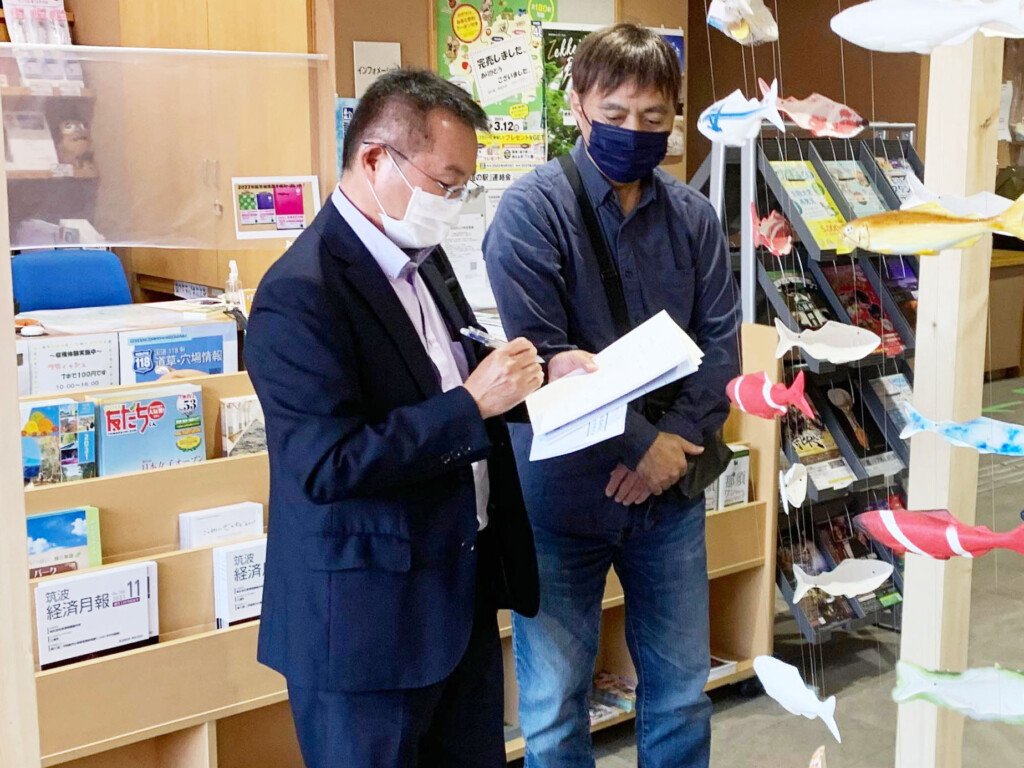 今朝は、さっそく茨城新聞さんによる取材がありました。