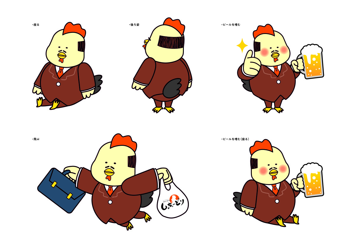 テイクアウト唐揚げ専門店、しゃちょーどりさんのロゴとキャラクターをデザインしました。