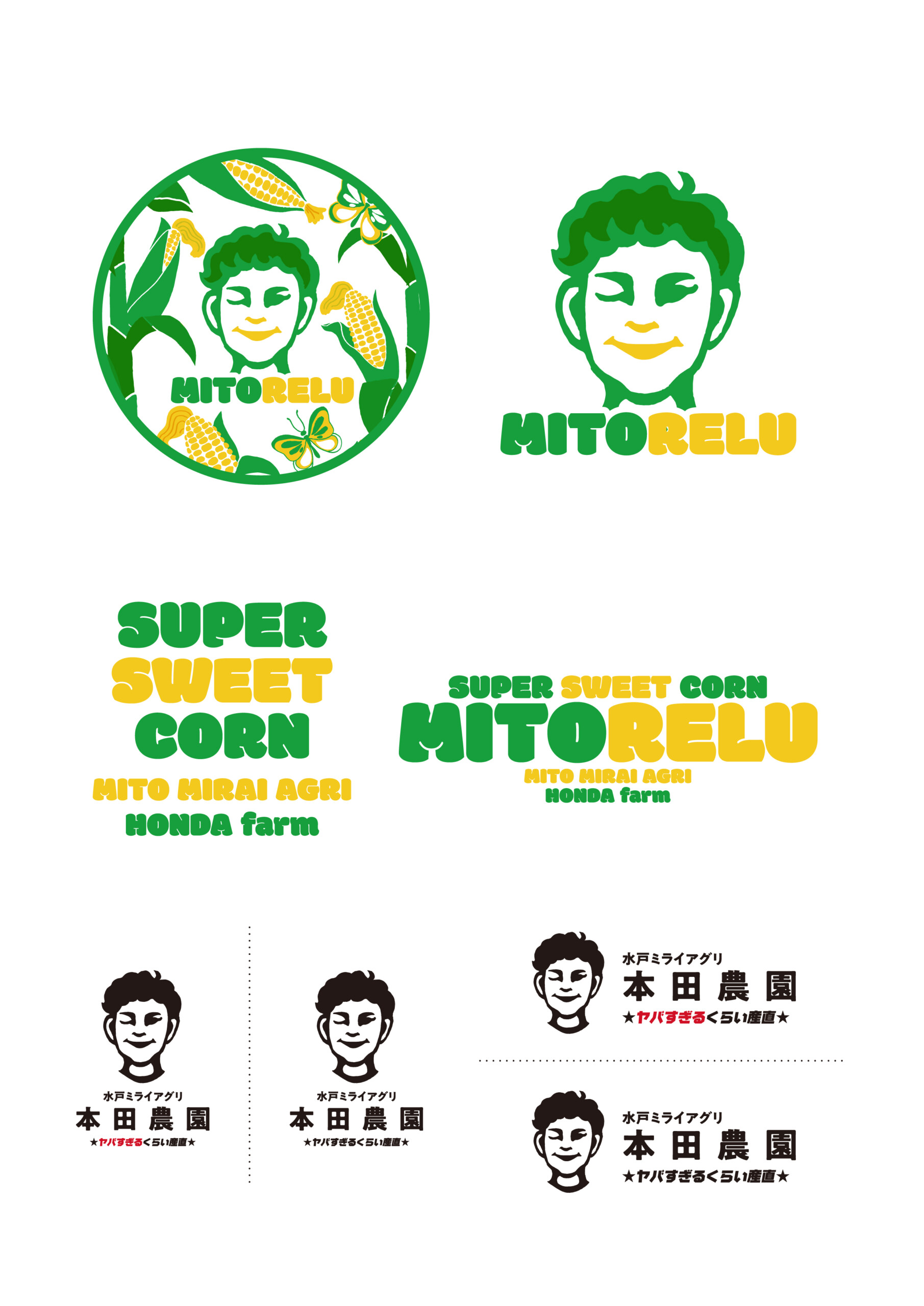 ロゴはパッケージデザインにも使用されているとうもろこしのイラストと、本田農園オーナーの似顔絵をデフォルメし、デザインしました。