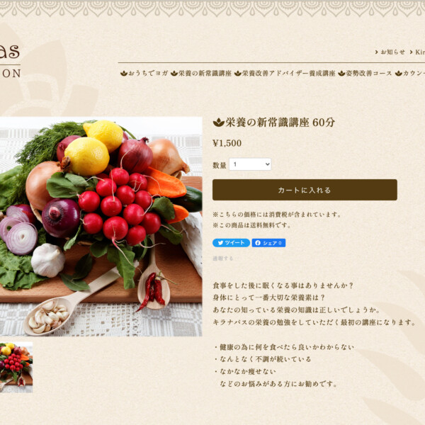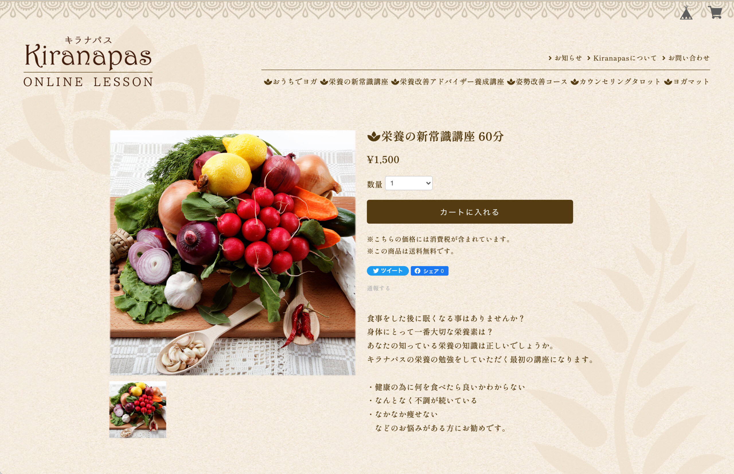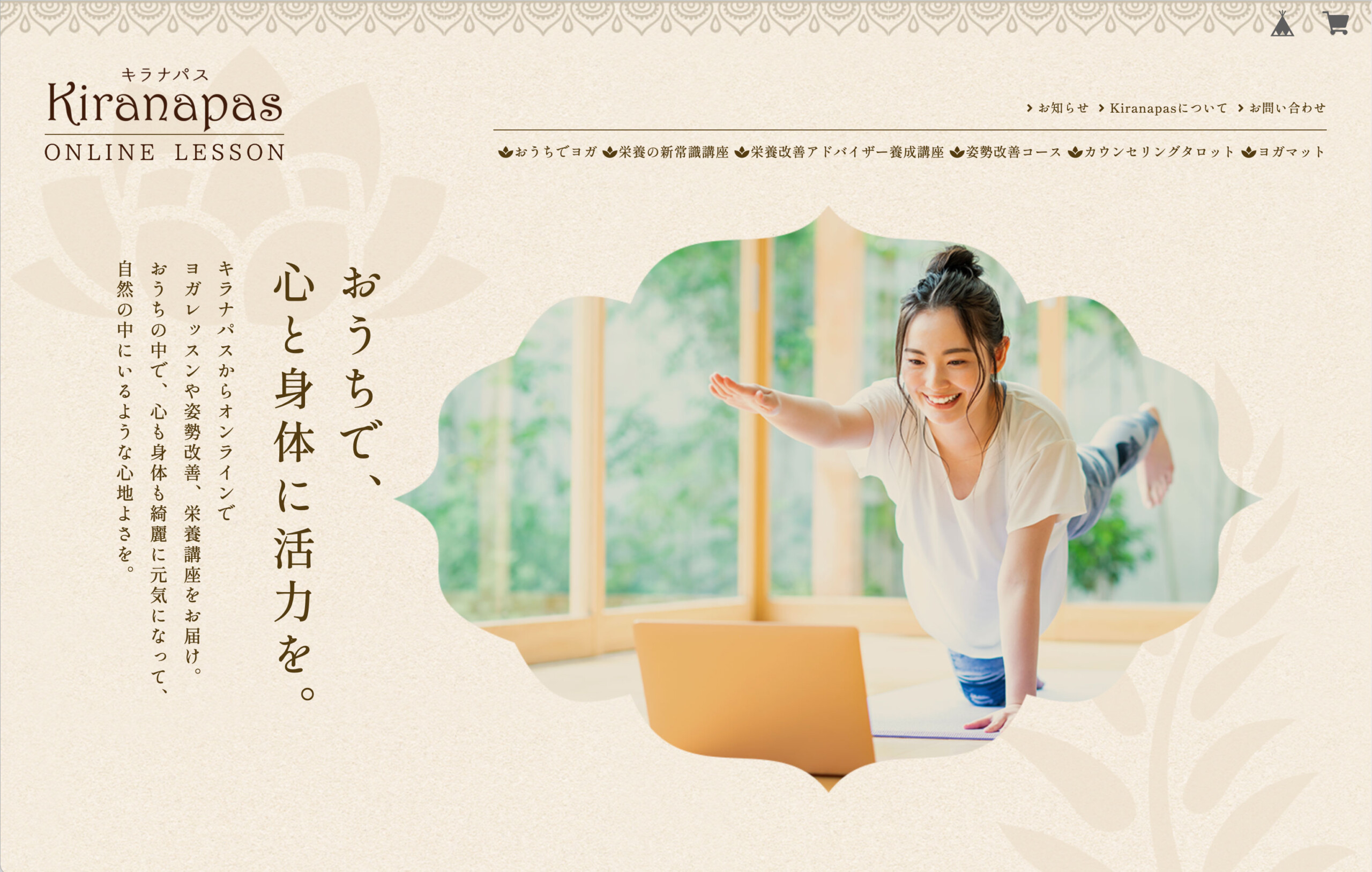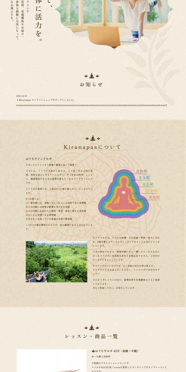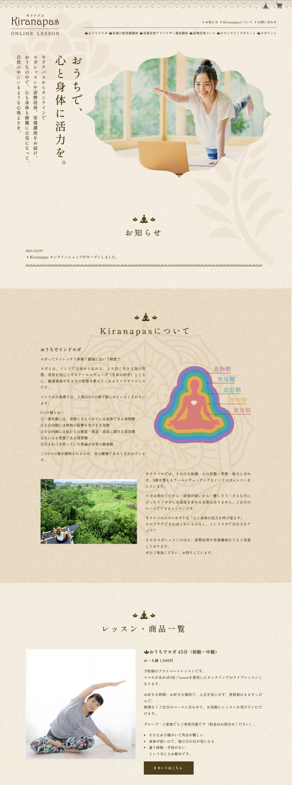 茨城県つくば市にあるヨガ教室、Kiranapas(キラナパス)のオンラインレッスンサイトを制作させていただきました。